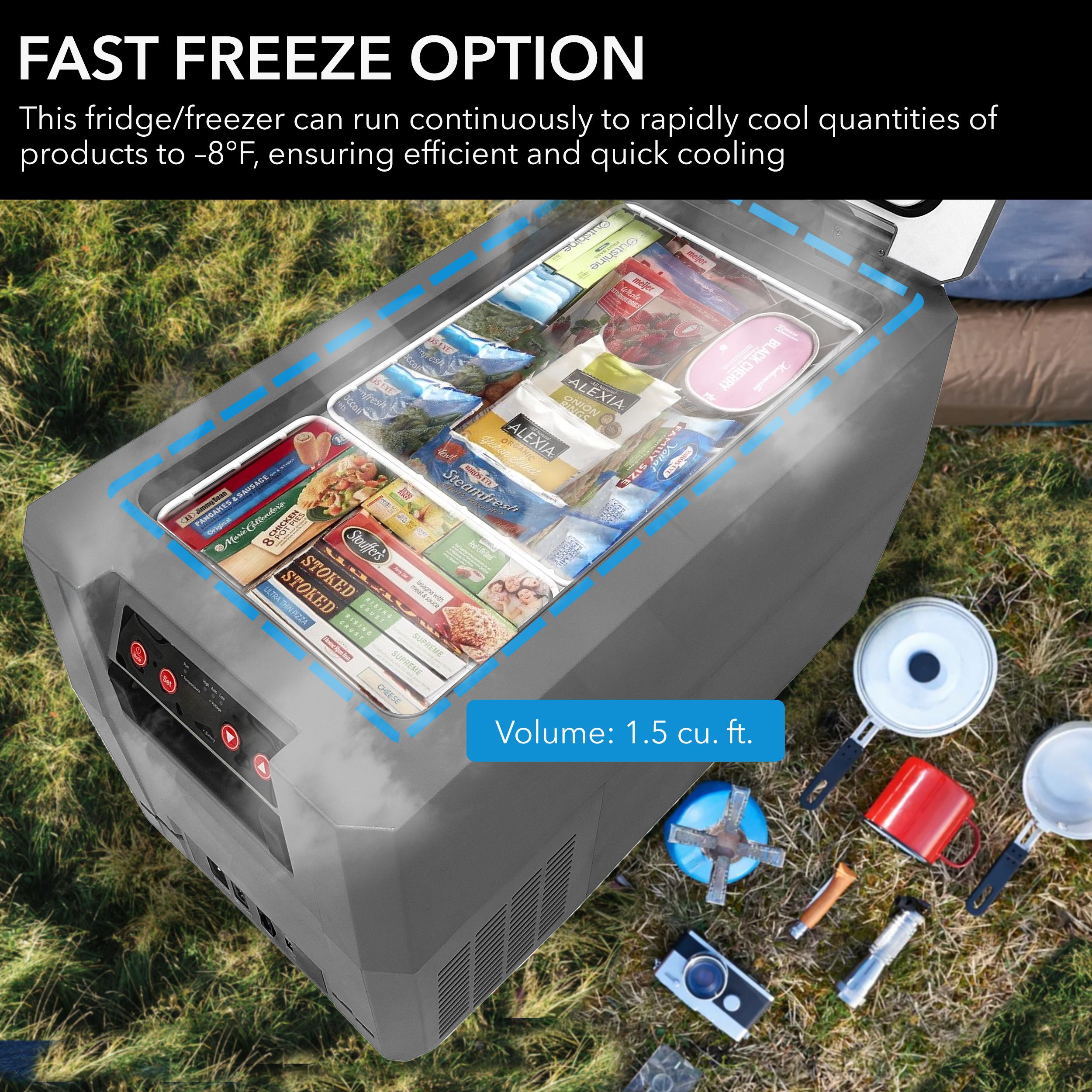 This Whynter Portable Fridge / Freezer offers premium quality and innovative design to your frozen/ refrigerated needs. This freezer is great for RVs, boats, campsites, fishing trips and truly portable so you can take your fridge / freezer anywhere! All you need is either a standard household 115 Volt outlet or a 12 Volt power source, like an automotive battery.