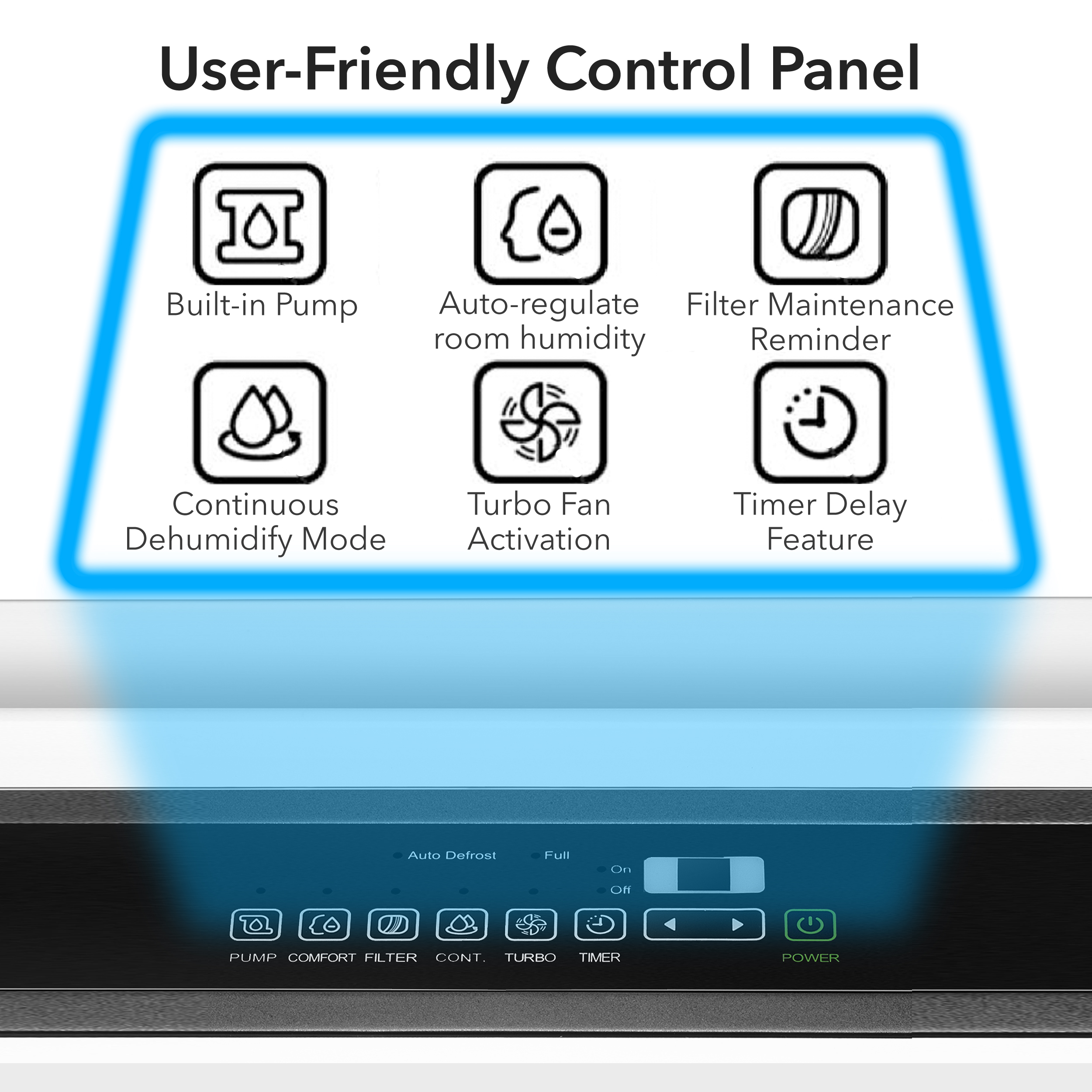 This unit can automatically turn off when set humidity levels have been met or when the water reservoir is full. The unit is also designed to restart in the event of a power interruption.