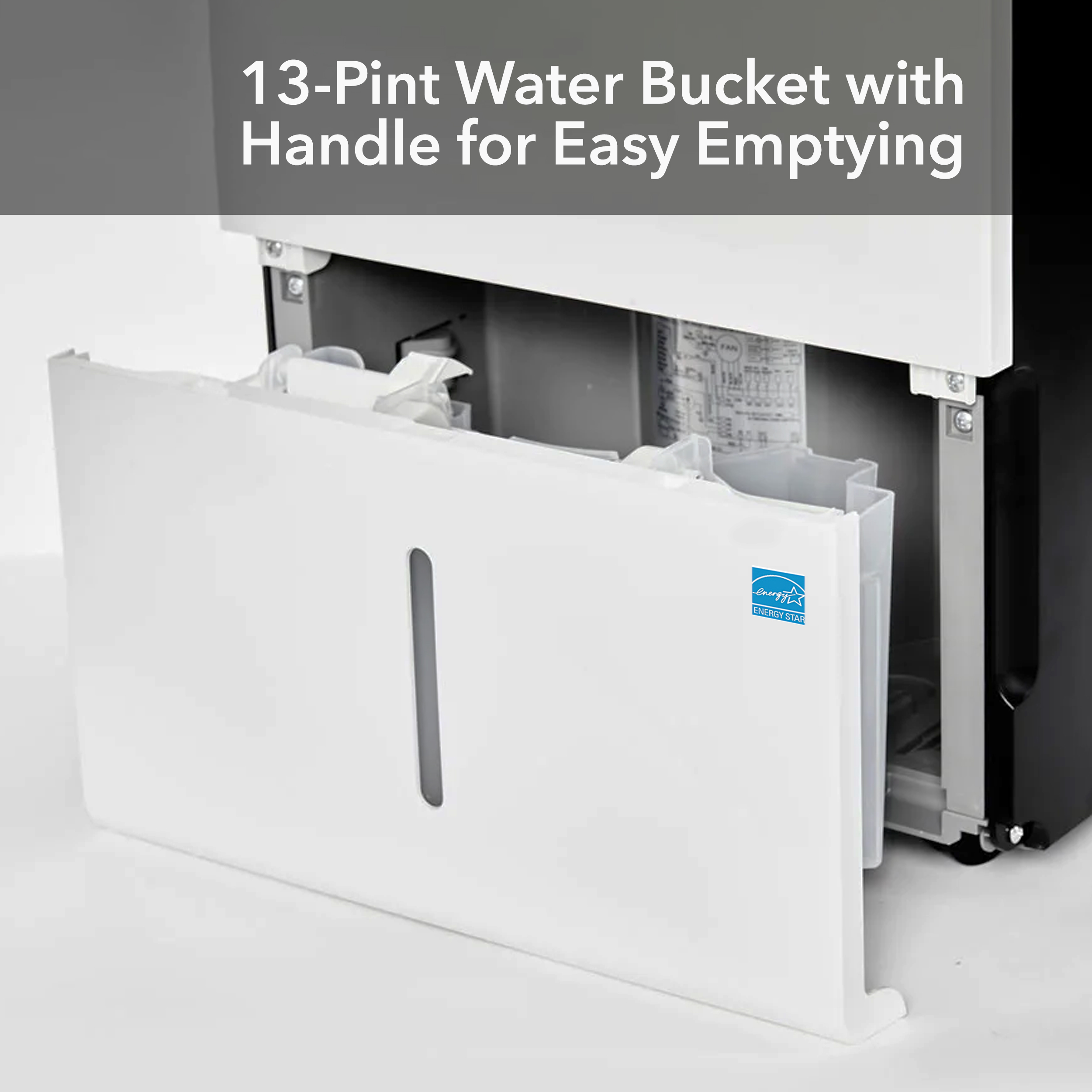 This portable dehumidifier can be continuously operated with 3 drainage options; manual drain, gravity drain, and condensate pump drain. This portable dehumidifier includes a 13-pint bucket that can be removed and emptied. The condensate pump can pump out (and up) condensation water through the included 16.5’ drain for continuous water removal with approximately 15’ of vertical lift. A bonus drain hose attachment is included with the unit for your immediate convenience.