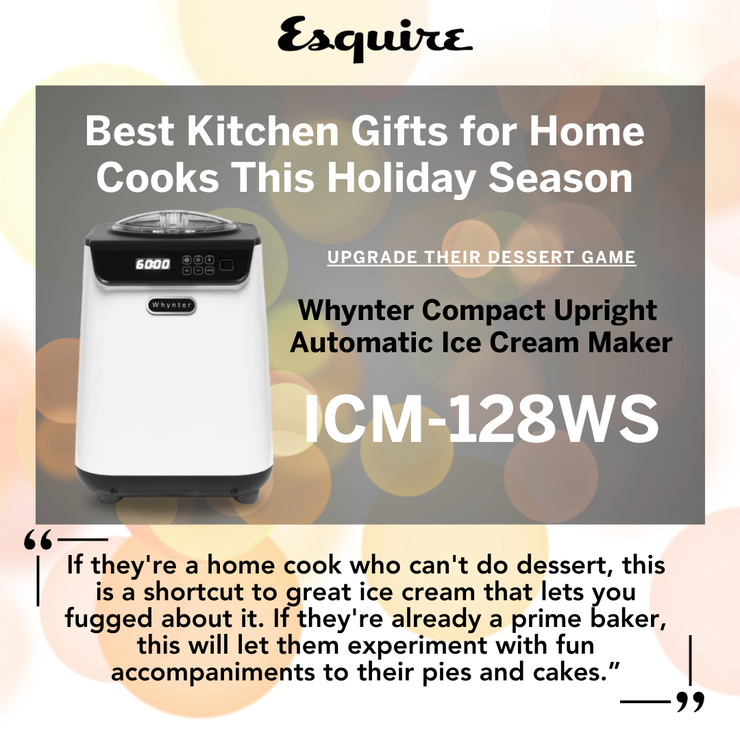 The Whynter Compact Upright Automatic Ice Cream Make ICM-128WS has become a favorite among dessert lovers, securing a spot on Esquire’s list of the Best Kitchen Gifts for Home Cooks. This blog explores why it’s one of the Best Gifts for Home Chefs and an unbeatable Whynter Ice Cream Maker Gift Idea this holiday season.